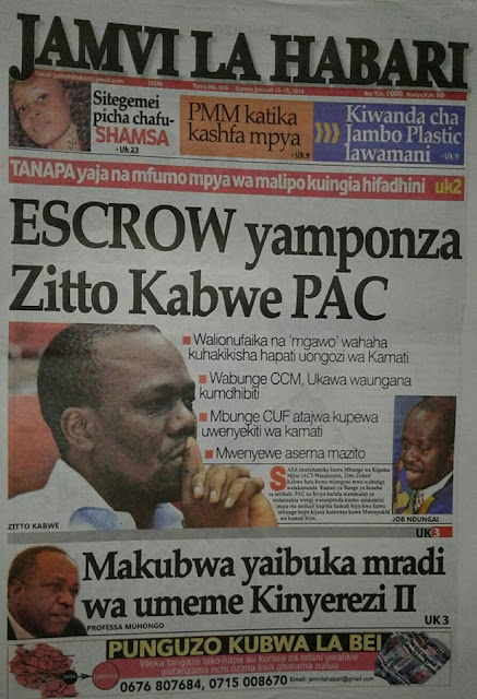 Magazeti ya Leo Tanzania Ijumaa ya January 15,2016